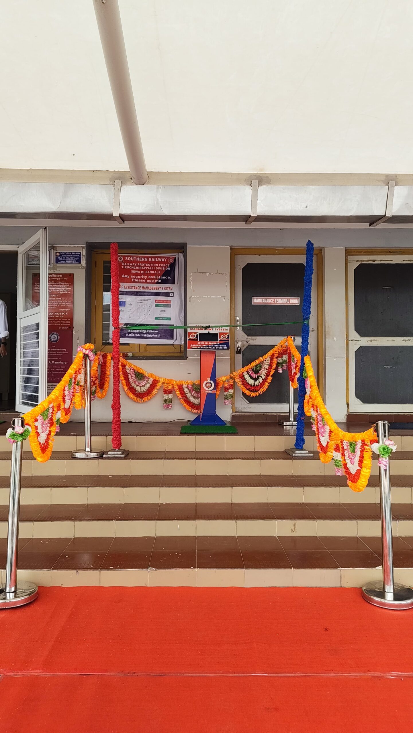 இன்று 26.11.2025, திருச்சி கோட்ட ரயில்வே மேலாளர் அவர்கள், ஸ்ரீரங்கம் ரயில் நிலையத்தில் ரயில்வே பாதுகாப்பு படை உதவி மேலாண்மை அமைப்பைத் தொடங்கி வைத்ததார். இது பயணிகள் தங்கள் பிரச்சினைகளை ஒரு செயலியைப் பயன்படுத்தித் தெரிவிக்க உதவும் வசதியாகும்.